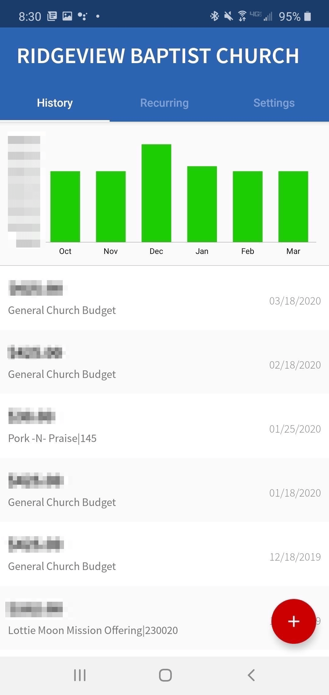 Step 4: Add payment method OR create recurring giving (Bank account is encouraged especially for recurring giving since the fees passed on to the church are lower)